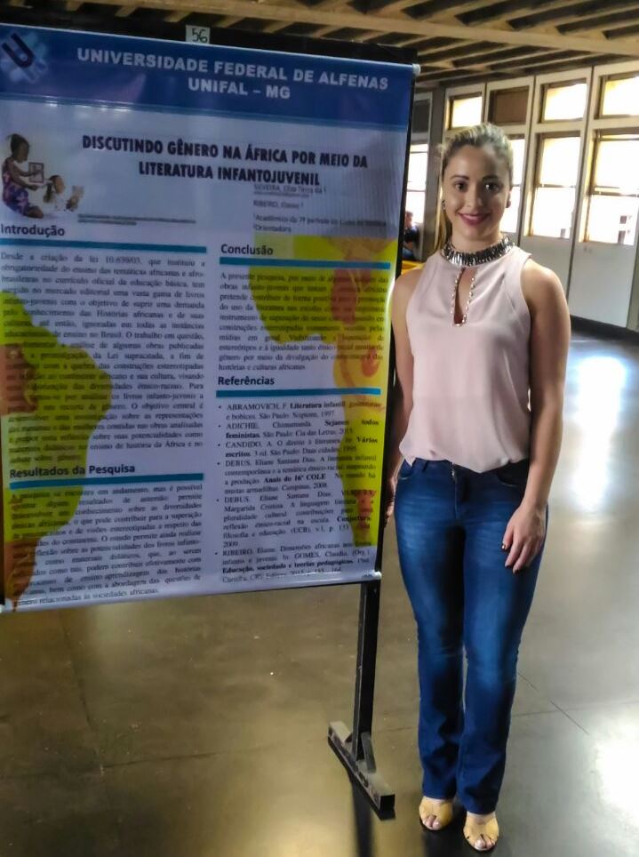 O trabalho “Discutindo gênero na África por meio da literatura infantojuvenil”, desenvolvido por Eliza Terra da Silveira com bolsa PIBIC/CNPq, foi classificado em segundo lugar na modalidade de pôster.