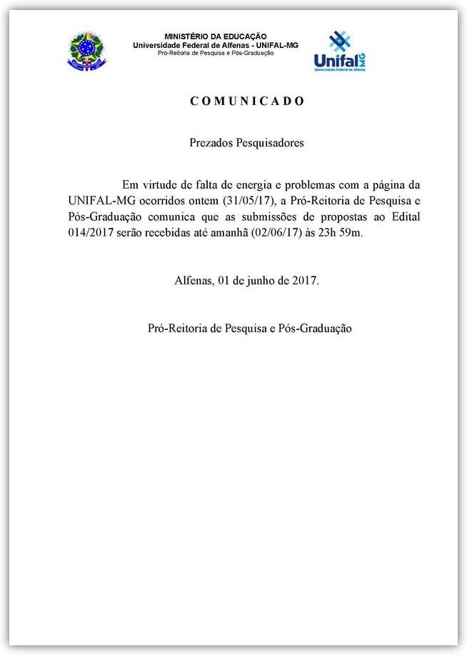 PRPPG divulga comunicado referente ao Edital 014/2017