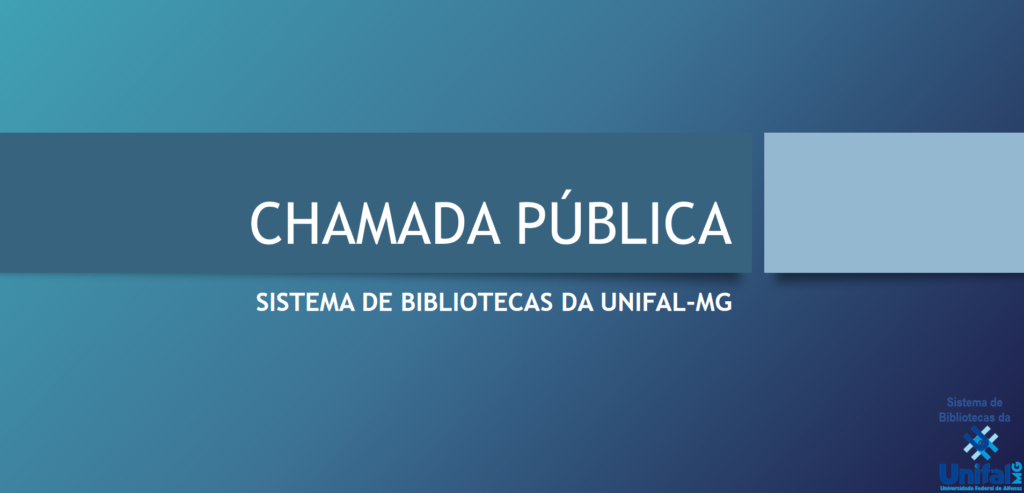 O Sistema de Bibliotecas informa sobre a abertura da chamada pública para os interessados em participar do processo de consulta aos cargos de diretor(a) e vice-diretor(a) do Sistema de Bibliotecas da UNIFAL-MG (SIBI/UNIFAL-MG). Poderão participar da chamada todos os servidores bacharéis em Biblioteconomia com registro no respectivo conselho, de acordo com os arts. 6º e 26 da Lei Federal nº 4.084, de 30 de junho de 1962, pertencentes ao quadro de servidores ativos da UNIFAL-MG.