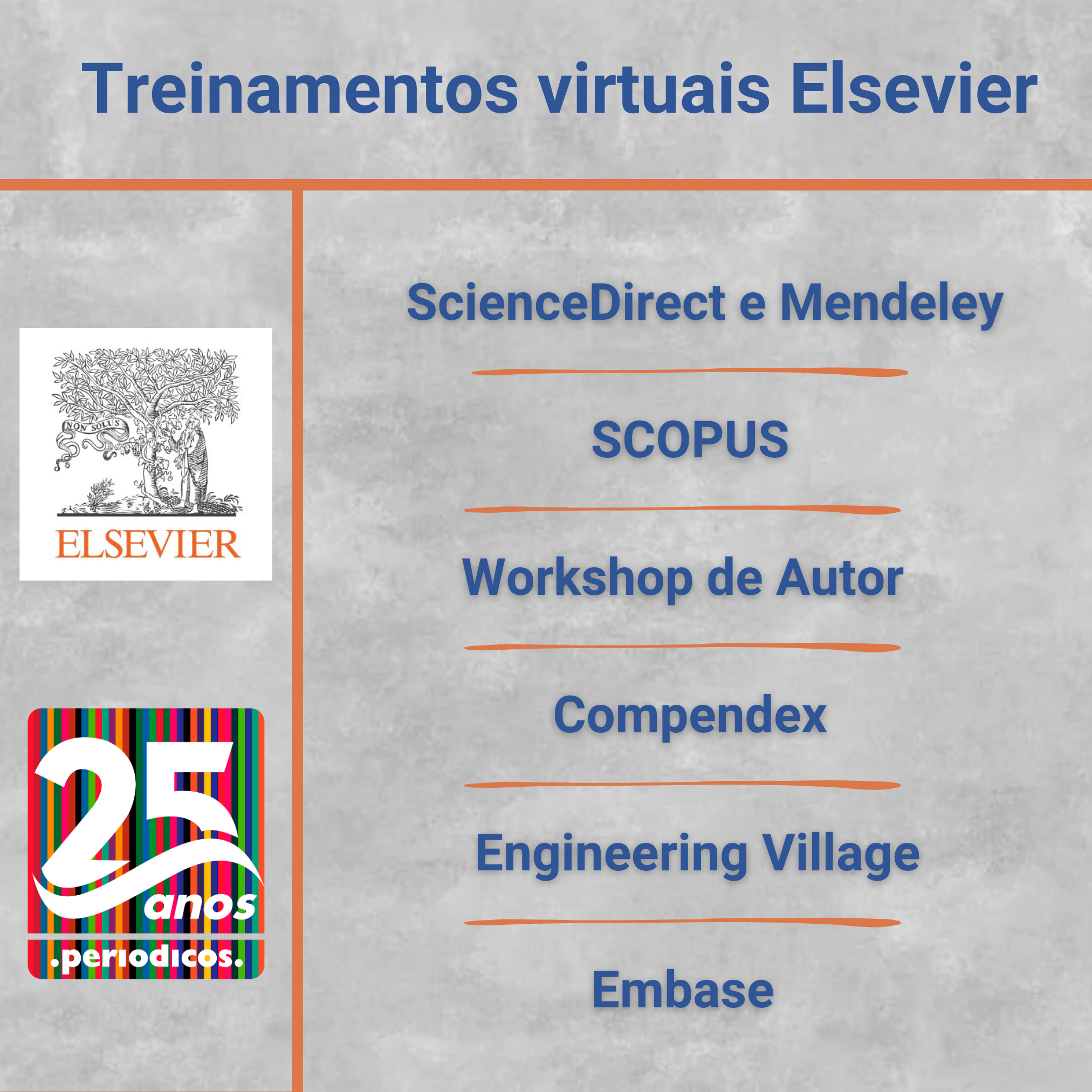 A Elsevier – editora parceira do Portal de Periódicos da CAPES – oferece uma série de sessões virtuais voltadas à capacitação no uso de suas plataformas: Embase, ScienceDirect, Scopus, entre outras.