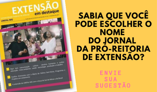 Alunos, servidores (TAE’s e docentes) e toda a comunidade externa poderão enviar propostas de nomes inéditos, em língua portuguesa, para identificar o jornal da Extensão, a partir do dia 01/02. As sugestões devem estar relacionadas ao tema Extensão Universitária e conter até 50
