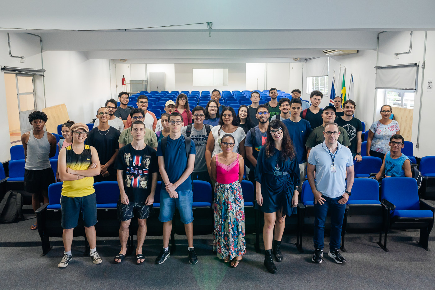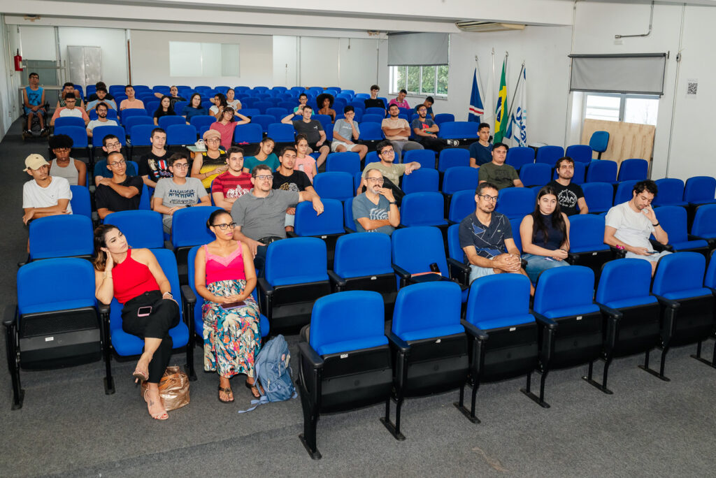 Em 14 de março de 2024 reunimos no auditório do Campus Santa Clara da UNIFAL-MG os calouros de 2024 do Curso de Ciência da Computação para acolhe-los. Contamos com a participação de alguns dos professores do curso, como a Professora Mariane Moreira de Souza, coordenadora do curso, o Prof. Rodrigo Martins Pagliares, chefe do Departamento de Ciência da Computação, o diretor do Instituto de Ciências Exatas, o prof. Nelson José Freitas da Silveira, dos professores Luiz Eduardo da Silva, Flavio Barbieri Gonzaga, Paulo Alexandre Bressan, Iago Augusto de Carvalho, Fellipe Guilherme Rey, Marcelo Lacerda Rezende e Ricardo Menezes Salgado, e dos representantes da UNIFAL-MG Profa. Maria Regina Martinez (representando a Pró-Reitoria de Extensão e Cultura), Cláudia Gomes (Pró-Reitoria de Assuntos Comunitários e Estudantis), Vanessa Bergamin Boralli Marques (Pró-Reitora de Pesquisa e Pós-Graduação), Profa. Dra. Roberta Seron Sanches (Pró-Reitora Adjunta de Graduação) e dos representas da Agência de Inovação – NidusTec, Klauber Sales Silva (Vice-Direção Agência de Inovação – NidusTec) e Laura De Bom Maimone (Administrativo).