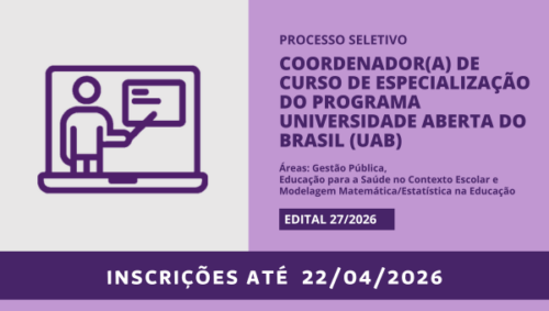 Ler maisEdital n° 027/2026 (publicado em 06/04/2026) Vaga A – Coordenador do Curso de Especialização em Gestão Pública – 01 (uma)