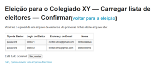 - Clique no botão carregar arquivo de eleitores