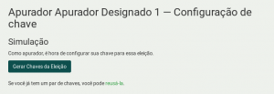 Ao ser designada como um Apurador, a pessoa receberá um e mail do Sistema de Votação Helios com as instrução e um link para que essa possa gerar ou carregar sua chave privada. A pessoa deve obrigatoriamente entrar no link que está no e-mail para que possa carregar suas informações de apurador.