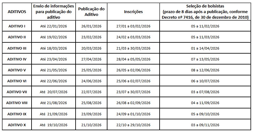 Atente-se às condições de seleção e ao cronograma de aditivos descritos no edital!
