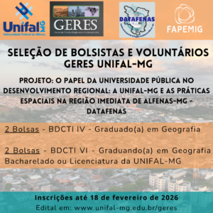 - Características do setor terciário na Região Imediata de Alfenas – Abigail Bruna da Cruz (Mestre em Geografia / Bolsista BDCTI IV) e Danilo Lenine Ferreira do Amaral (Prof. Me. Substituto na Universidade Federal de Alfenas / Pesquisador GERES)