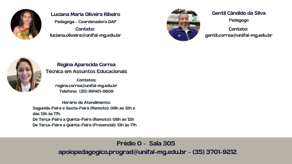 Se houver dúvidas, procure atendimento por mensagem eletrônica apoiopedagogico.prograd@unifal-mg.edu.br.