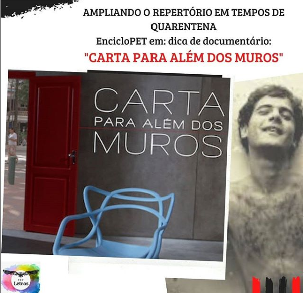 A série “Ampliando o repertório em tempos de quarentena”, do PET Letras, tem como objetivo proporcionar entretenimento e conhecimento de qualidade para vocês nesses dias de home office. A dica de hoje é sobre o documentário “Carta Para Além dos Muros”, que retrata a história da aids no Brasil e os desafios atuais