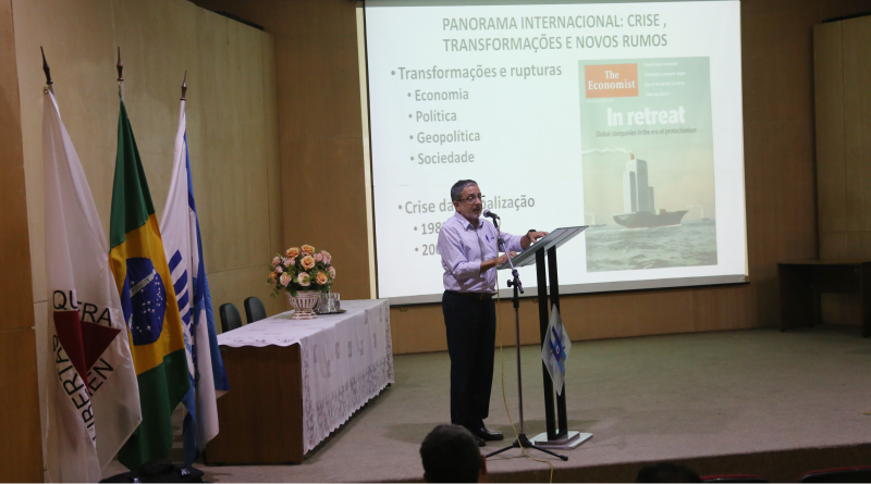 A aula teve início com a apresentação do panorama internacional que sofre com crises, transformações econômicas, políticas e sociais desde 2008, bem como discussão de novas trajetórias para a situação. De acordo com o Prof. Mariano, três décadas de transformações geraram essa crise, isso devido aos desequilíbrios e assimetrias cada vez maiores entre países, grupos econômicos e sociais, além de desajustes patrimoniais para famílias, empresas e Estados, e aumento da desigualdade e fragilização das instituições públicas e privadas.
