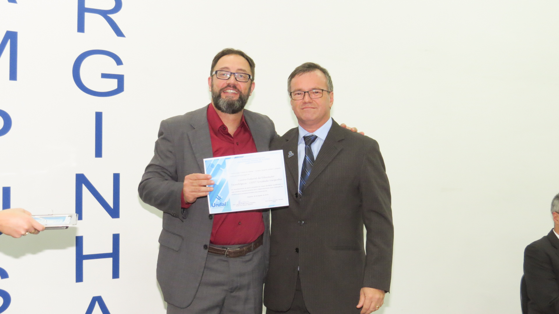 As homenagens se estenderam aos funcionários terceirizados com mais tempo de campus; aos professores e técnico-administrativos em educação com mais tempo de atuação na unidade; aos membros das gestões anteriores que contribuíram para a implantação e desenvolvimento do campus, como o professor Paulo Márcio de Faria e Silva, reitor durante os mandatos 2010-2014/2014-2018; ao primeiro coordenador de curso e à primeira coordenadora administrativa do campus, bem como às organizações, públicas e privadas, que colaboraram e continuam colaborando via parceria para o processo formativo dos alunos. “Agradeço à Prefeitura e à Câmara de Vereadores de Varginha pelo apoio a nós concedido durante este período; aos demais órgãos públicos e empresas, que nos auxiliam na formação e manutenção de nossos alunos, dando-lhes oportunidades de estágios e empregos”, destacou o diretor em discurso.