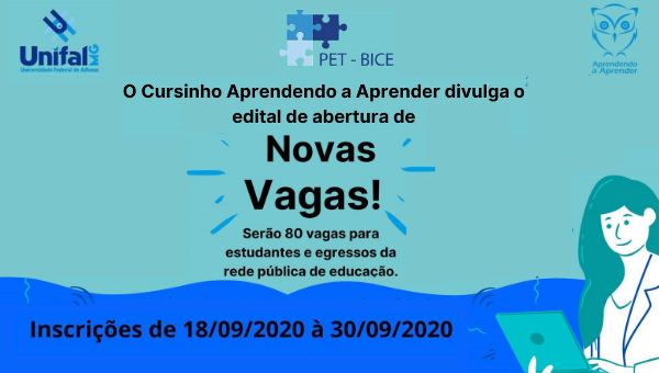Destinado a alunos(as) oriundos(as) da rede pública de ensino, em qualquer uma de suas esferas (municipal, estadual ou federal), estudante do 3º ano do ensino médio ou egresso, o curso “Aprendendo a Aprender” disponibilizará um total de 80 vagas, sendo 50 vagas para egressos e 30 vagas para estudantes do 3º ano do ensino médio.