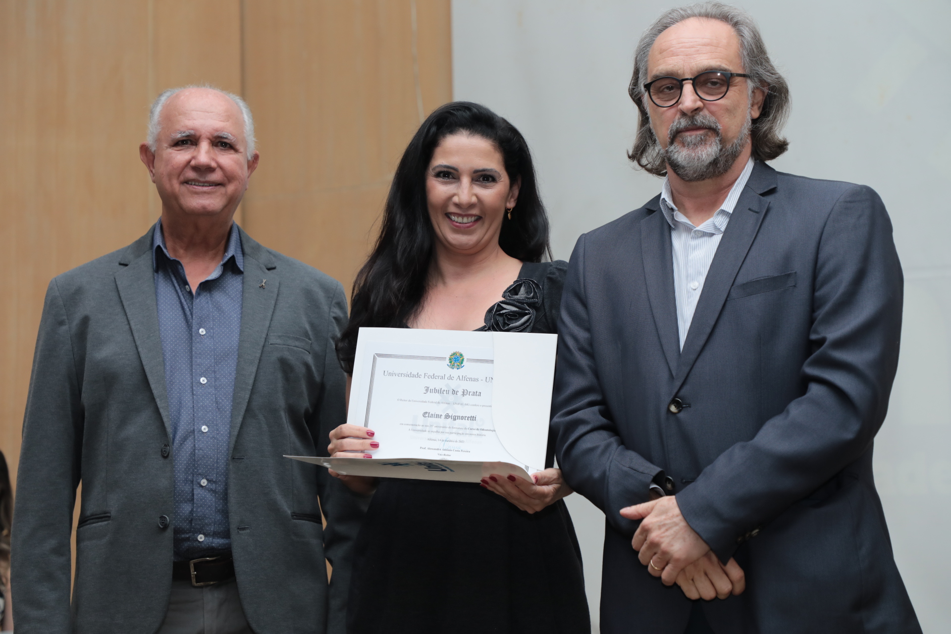 “A educação abre todas as portas, vejam isso como o melhor exemplo que vocês podem dar aos filhos de vocês. É isso que nós recebemos de nossos pais quando nos apoiaram a estudar. E é isso que eu desejo para todos: que a gente continue sentindo orgulho, nos sentindo honrado por participarmos da Universidade Federal de Alfenas, a qual eu agradeço muito pela homenagem feita para mim”, salientou a Profa. Olinda Vilas Boas em seu pronunciamento.