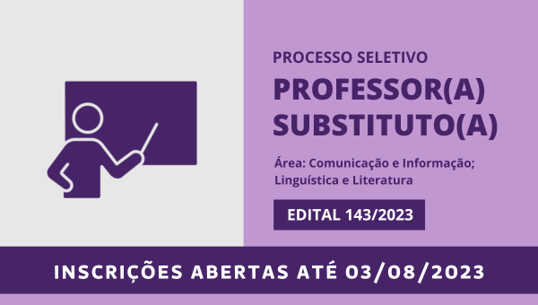 Estão abertas as inscrições para o processo seletivo de professor(a) substituto(a) na área de área de Comunicação e Informação; Linguística e Literatura.
