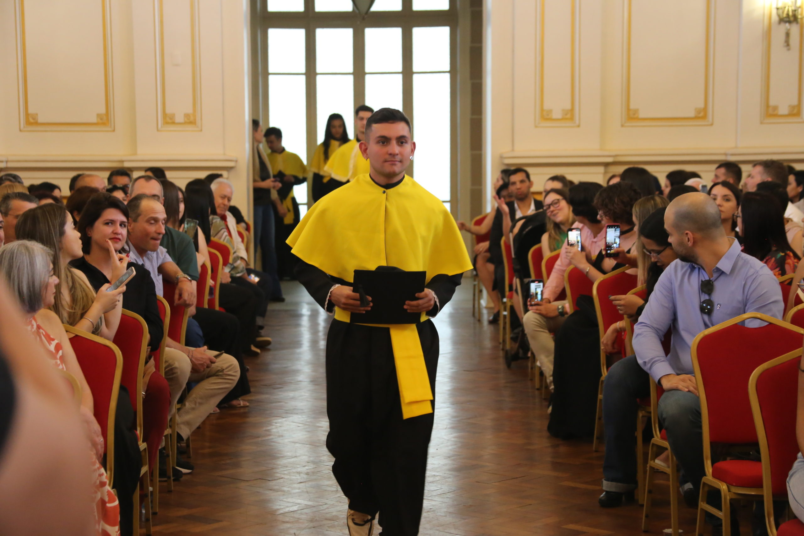 Na sequência, o orador das engenharias, Arthur Mestre Silvino, comemorou a vitória ao lado dos colegas. “Hoje, olhamos para trás com orgulho, não apenas pelo diploma que recebemos, mas pelas transformações que vivenciamos. Nossa formação não se limitou aos cálculos, equações e teorias. Ela nos ensinou resiliência, trabalho em equipe e a importância de pensar além dos limites convencionais. Ao olhar para as diversas pessoas que estão se formando junto comigo, sinto que também fui responsável pela conclusão dessa etapa na vida de vocês e sinto que muito do que sou hoje também leva um pouco de cada um de vocês”, disse.
