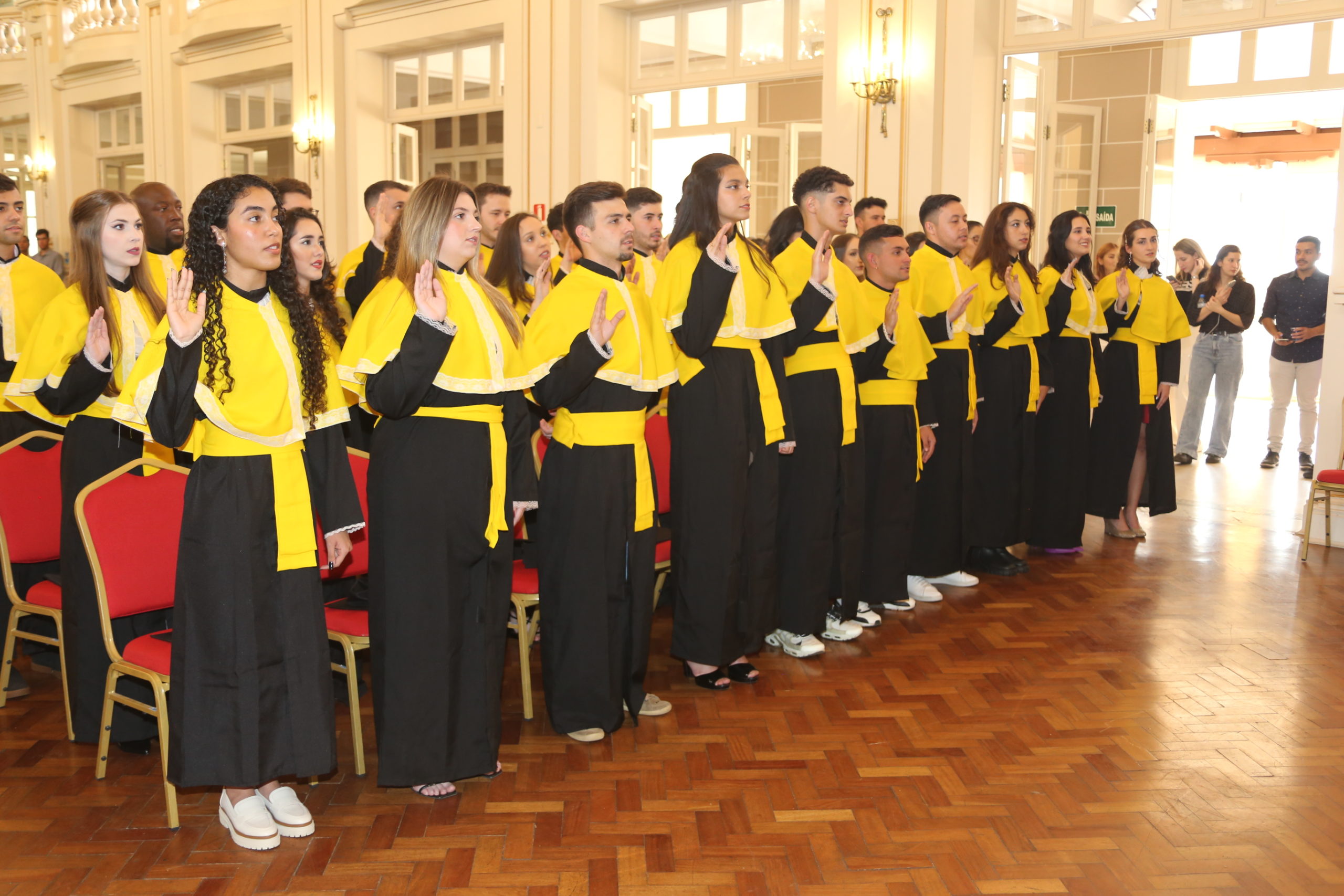 Do total de 88 novos profissionais que concluíram o ensino superior pela Universidade, 34 se graduaram no Bacharelado Interdisciplinar em Ciência e Tecnologia (BICT), 16 em Engenharia Ambiental, 9 em Engenharia de Minas e 29 em Engenharia Química. A formanda do curso de Engenharia Química, Ana Flávia Ribeiro Santos, prestou o juramento solene e requereu os graus acompanhada dos demais colegas.