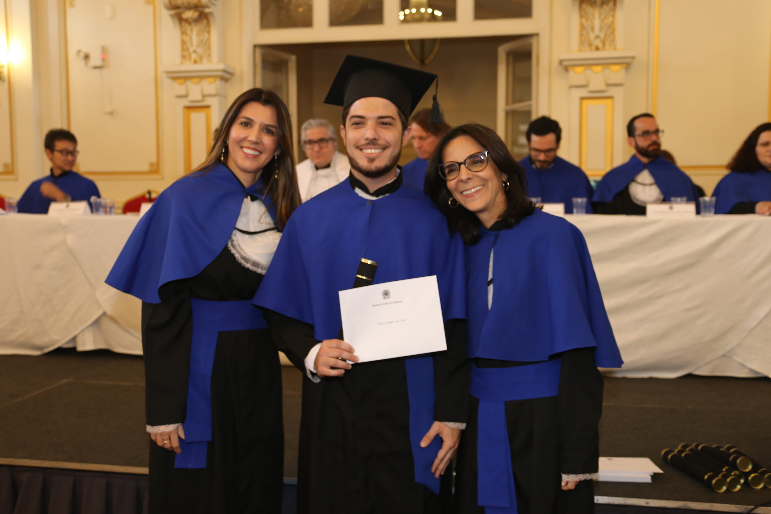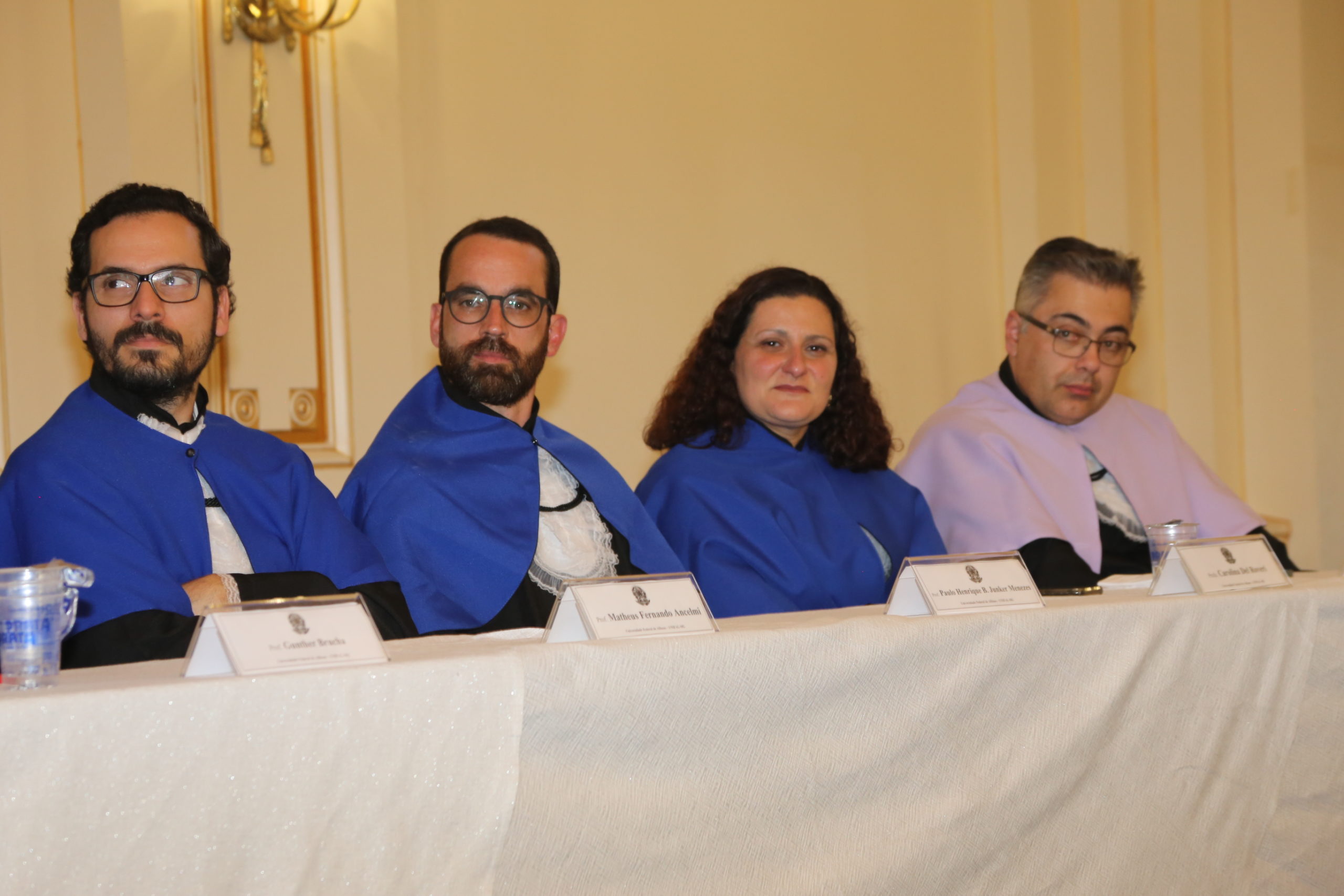 Também estiveram presentes na colação de grau o coordenador do Bacharelado Interdisciplinar em Ciência e Tecnologia, Prof. Rodrigo Sampaio Fernandes, o coordenador da Engenharia Ambiental, Prof. Paulo Henrique Bretanha Junker Menezes, o coordenador da Engenharia de Minas, Prof. Matheus Fernando Ancelmi, a coordenadora da Engenharia Química, Profa. Jaqueline Costa Martins e o professor homenageado dos cursos de engenharia, Leandro Lodi.