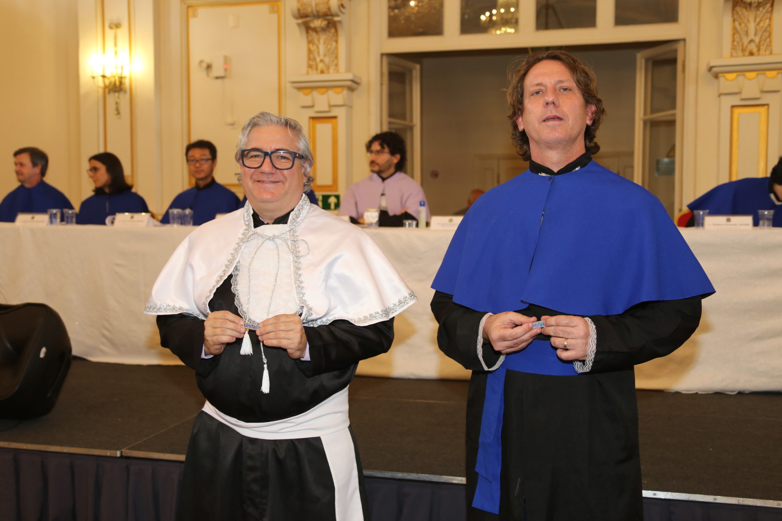 O paraninfo do Bacharelado Interdisciplinar em Ciência e Tecnologia, Prof. Laos Alexandre Hirano, utilizou ideogramas em japonês para proferir sua mensagem aos formandos, enfatizando que as dificuldades encontradas ao longo da jornada são essenciais para o crescimento e amadurecimento dos novos profissionais. Para ele, com um novo olhar, é possível sentir gratidão por estes momentos ao longo da vida, já que exercem mudanças positivas na vida de cada um. A paraninfa dos cursos de engenharia, Profa. Giselle Patrícia Sancinetti e a a vice-diretora do Instituto de Ciência e Tecnologia, Profa. Carolina Del Roveri, reforçaram, em discursos emocionados, o quão privilegiados os novos profissionais são pela oportunidade de concluir um curso superior em uma universidade pública. “Orgulhem-se sempre desta conquista em toda sua carreira e não se esqueçam disso durante sua trajetória. Não deixem de lembrar da UNIFAL-MG com respeito e gratidão. Voltem quando quiserem, esta casa também é de vocês. Confiem na competência, potencial e talento que possuem, vocês atingirão todos os sonhos e objetivos que projetaram para suas vidas”, ressaltou Giselle.