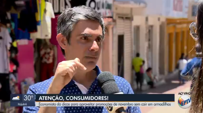 No dia 08/11, o Jornal EPTV – 1ª edição exibiu uma reportagem orientando os consumidores sobre como não cair em práticas fraudulentas de alguns comércios neste período, quando há promoções como a Black Friday. Na oportunidade, o professor Fernando Batista Pereira, do Instituto de Ciências Sociais Aplicadas da UNIFAL-MG, deu dicas de planejamento para aproveitar as promoções sem cair em armadilhas.