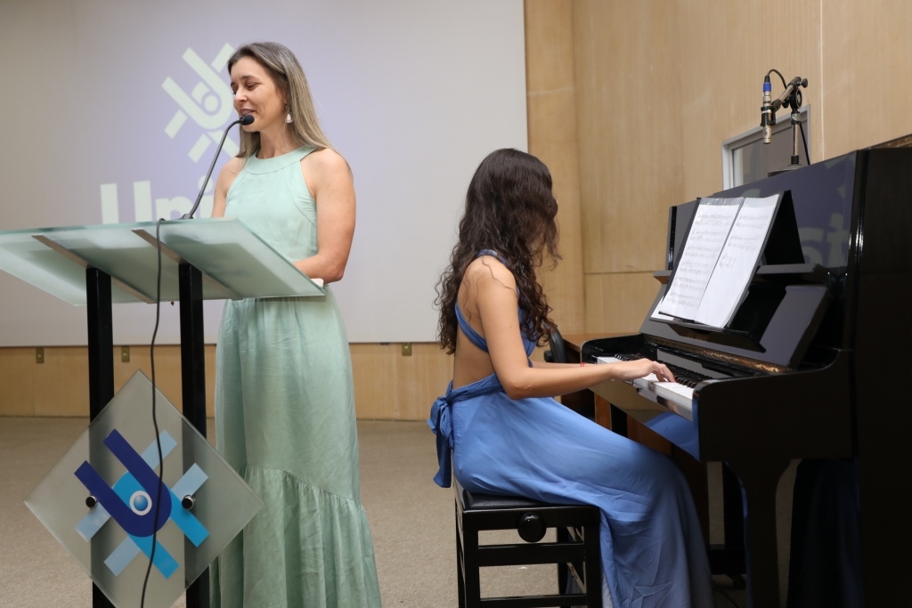Após as homenagens, a farmacêutica Vivian Donato Mendes Fernandes, oradora da turma, fez a leitura de uma mensagem aos presentes. O momento ganhou um acompanhamento especial no piano por Giulia Nakamura, filha do farmacêutico André Luís da Silva, com a música “Por Enquanto” de Renato Russo.