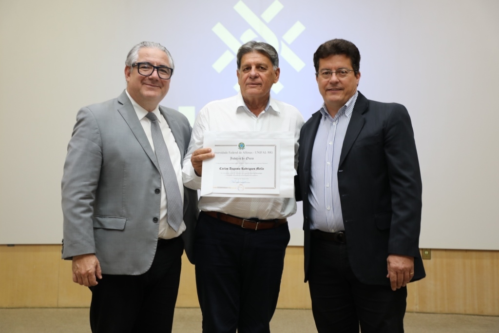 Os diplomas comemorativos foram entregues reitor, o professor Sandro Amadeu Cerveira, e pelo diretor da Faculdade de Odontologia, o professor Edmêr Silvestre Pereira Júnior.