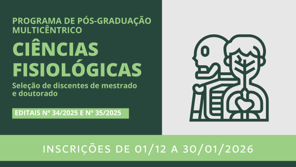 O Programa de Pós-Graduação Multicêntrico em Ciências Fisiológicas (PPGMCF) da UNIFAL-MG disponibilizou os editais dos processos seletivos e está com inscrições abertas para candidatos(as) interessados(as) em cursar mestrado ou doutorado.