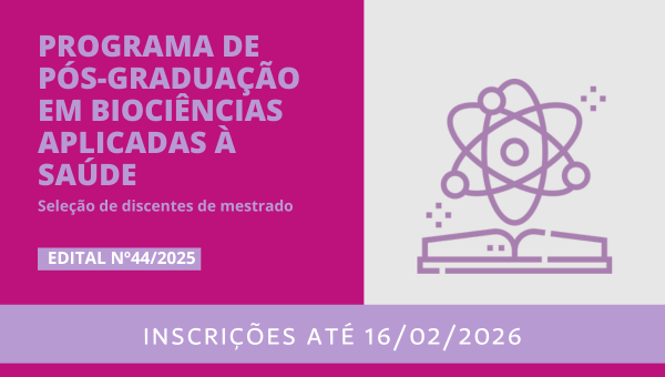 O Programa de Pós-Graduação em Biociências Aplicadas à Saúde (PPGB) da UNIFAL-MG divulgou o processo seletivo para ingresso de discentes no curso de mestrado, com início previsto para o primeiro semestre de 2026.