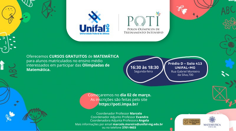 Por meio de encontros presenciais voltados ao desenvolvimento do raciocínio lógico e de habilidades de resolução de problemas, o projeto busca aprimorar o desempenho dos estudantes de Alfenas e região nessas competições. Além de contribuir para melhores resultados em olimpíadas científicas, a iniciativa também incentiva o interesse pela Matemática e favorece a melhoria do desempenho escolar, gerando impactos positivos no ambiente educacional e no convívio familiar dos participantes.