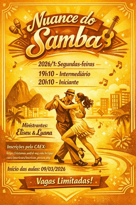 O projeto de extensão “Nuance do Samba” promoverá aulas de samba a partir do dia 09 de março, voltadas a participantes iniciantes e intermediários.
