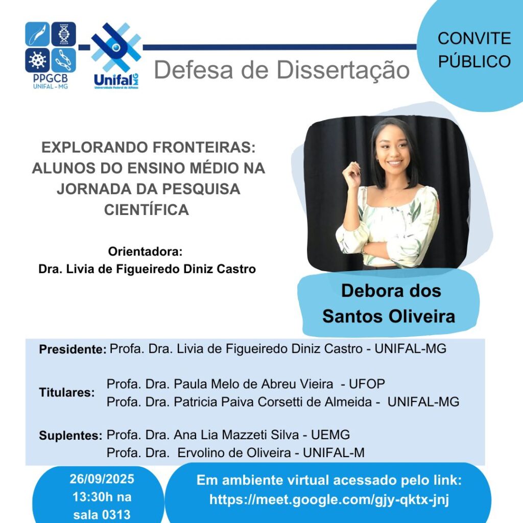 Aqui serão divulgadas as datas, horários e locais das últimas qualificações e defesas. Participe deste momento tão importante para os discentes do programa!