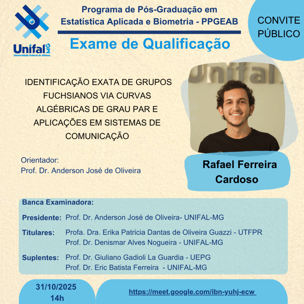 Aqui serão divulgadas as datas, horários e locais das últimas qualificações e defesas. Participe deste momento tão importante para os discentes do programa!