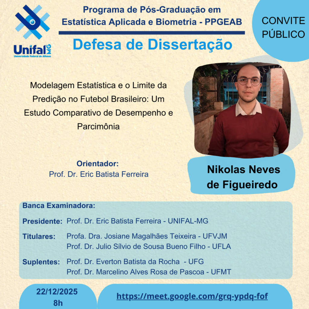 Aqui serão divulgadas as datas, horários e locais das últimas qualificações e defesas. Participe deste momento tão importante para os discentes do programa!