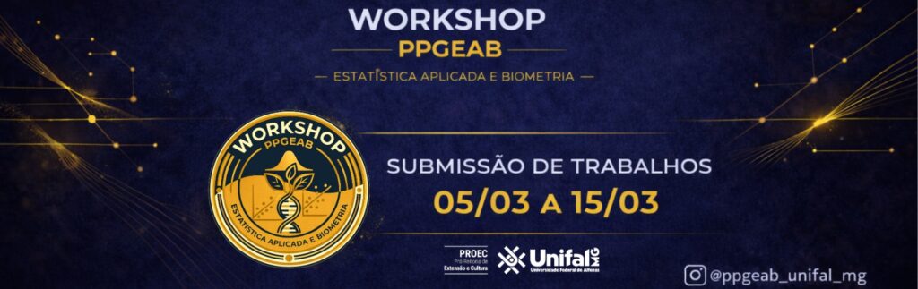 É com grande satisfação que convidamos todos(as) para submeterem trabalhos ao V Workshop do Programa de Pós-Graduação em Estatística Aplicada e Biometria (PPGEAB), da Universidade Federal de Alfenas.