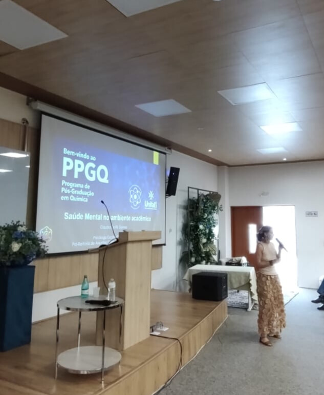 PPGQ em diálogo – 1ª edição A primeira edição aconteceu no dia 19/09/2025 e contou com a presença da profa. Dra. Cláudia Gomes, atual Pró-reitora da PRACE, que proferiu a palestra intitulada “Saúde mental no ambiente acadêmico”.
