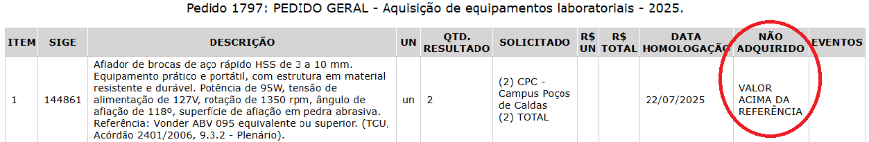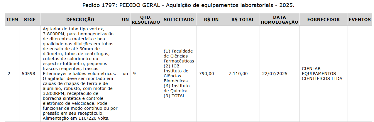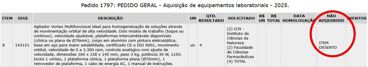 Após o término da disputa, a Divisão de Compras/DAA/PROAF importará o resultado para o Sistema de Compras – SIC e a Unidade Requisitante poderá visualizá-lo da seguinte forma:
