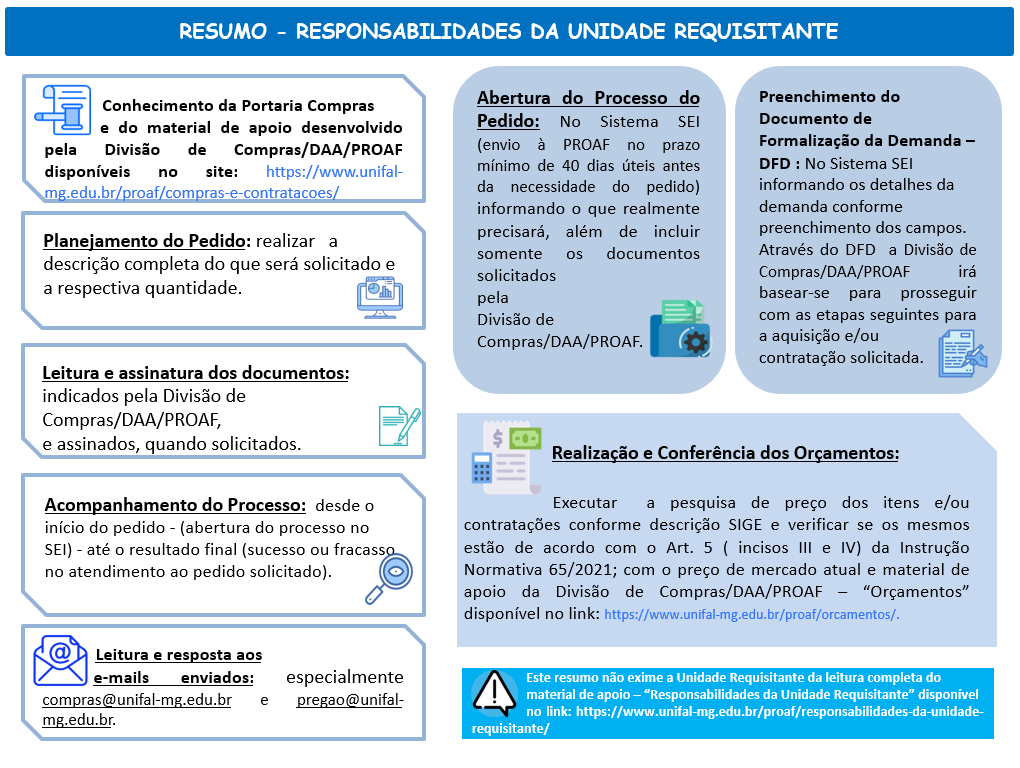 RESUMO – RESPONSABILIDADES DA UNIDADE REQUISITANTE